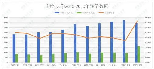 近11年来,纽约大学的平均转学录取人数维持在1900人左右,平均录取率约为28%。