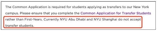 纽约大学是分学院录取的,在填写Common App网申系统的时候转学生有第一志愿和第二志愿的选择。