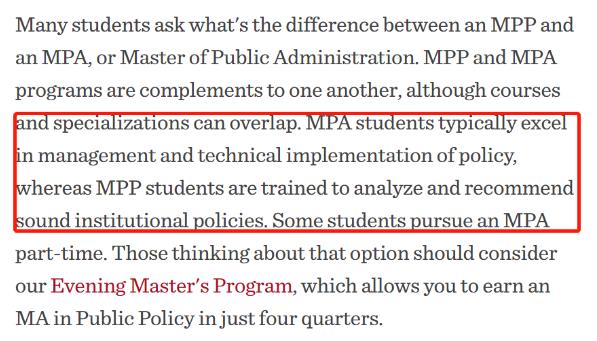 MPA项目偏政策的执行和具体操作,所以招生更加看中相关经验;MPP 项目偏政策的制定和分析,所以招生更加看重数理分析能力。