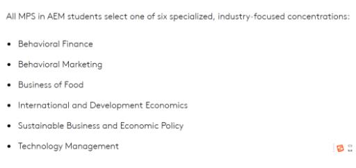 康奈尔大学应用经济学与管理学研究硕士项目是一门为期一年的强化课程,旨在深化学生的本科背景知识,通过严谨的课程学习、问题研讨等形式,完成30个学分的应用经济与管理领域课程模块。