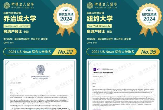 恭喜明德学子W同学,凭借GPA3.0的成绩一举拿下全美TOP22与TOP35的房地产项目Offer!