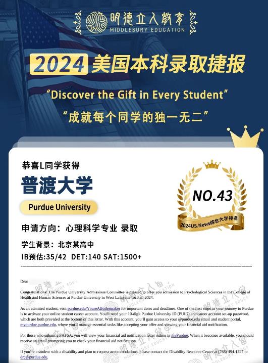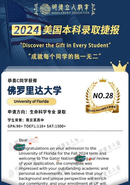 #明德去年L同学更是以 33分的成绩和1410的SAT获得了录取,而且还是荣誉项目,可以说是实现了很大的突破!