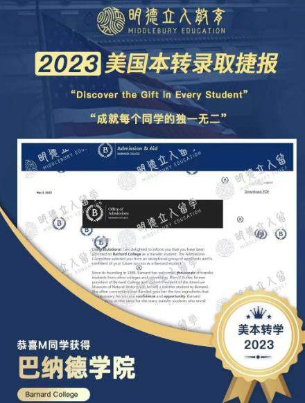 递交转学申请后,M同学实现了综合大U圣母大学以及文理学院巴纳德学院的双丰收。
