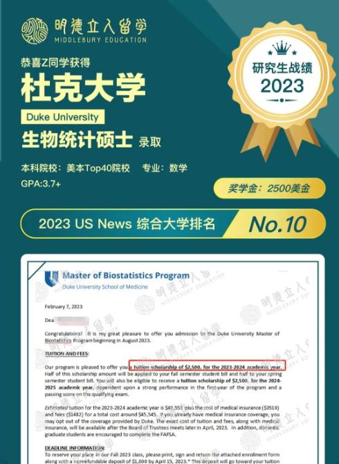 明德学子Z同学,在大学期间保持着3.7+的GPA,并积极参与了校内的生统科研,这无疑为学生的简历增色不少。