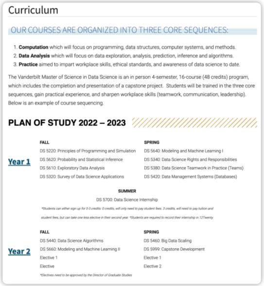 范德堡大学数据科学硕士项目(Vanderbilt University Data Science Masters Program)旨在培养具有数据科学领域深入知识和实践技能的专业人才,他们能够在不同领域中应用数据科学的方法和技术。